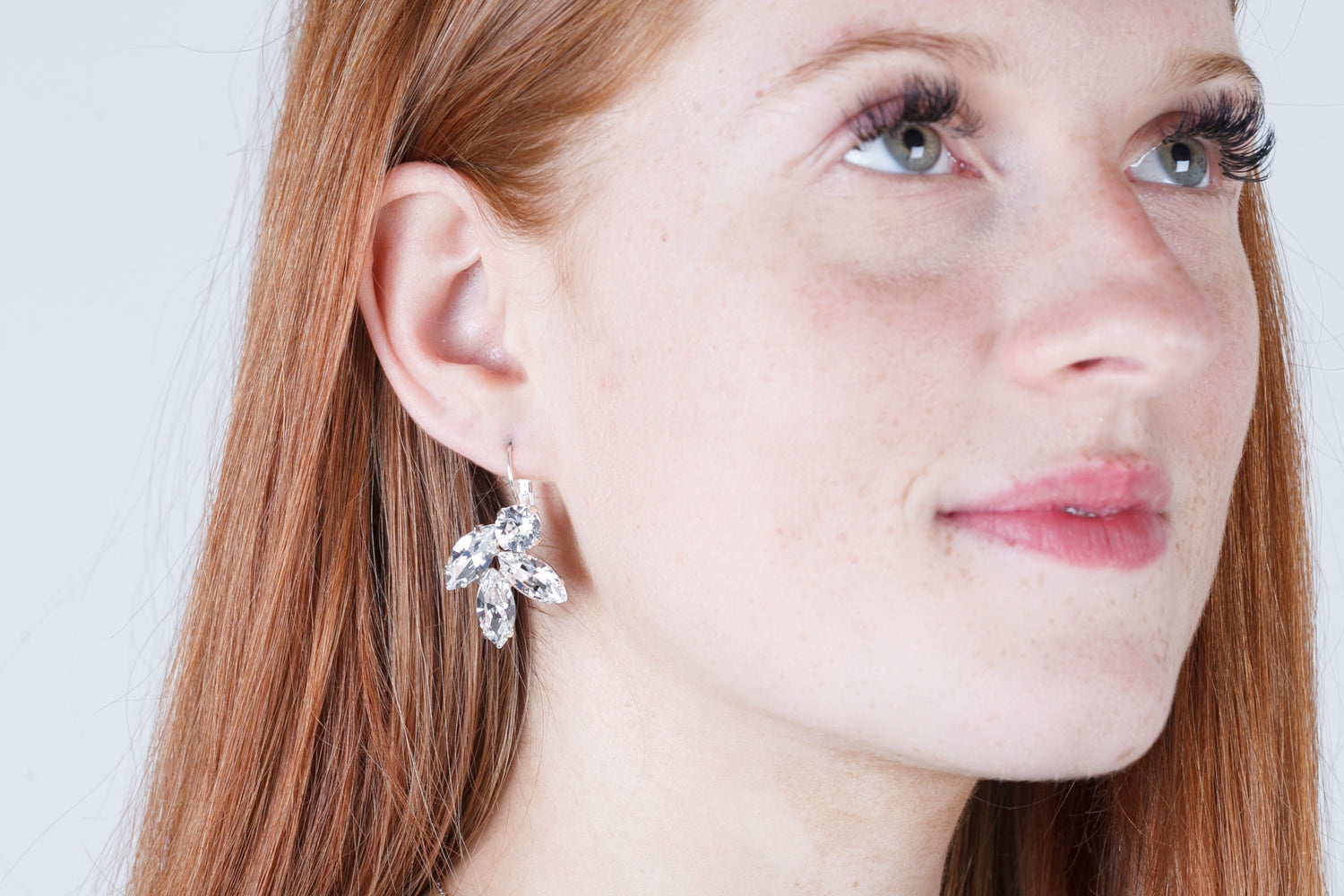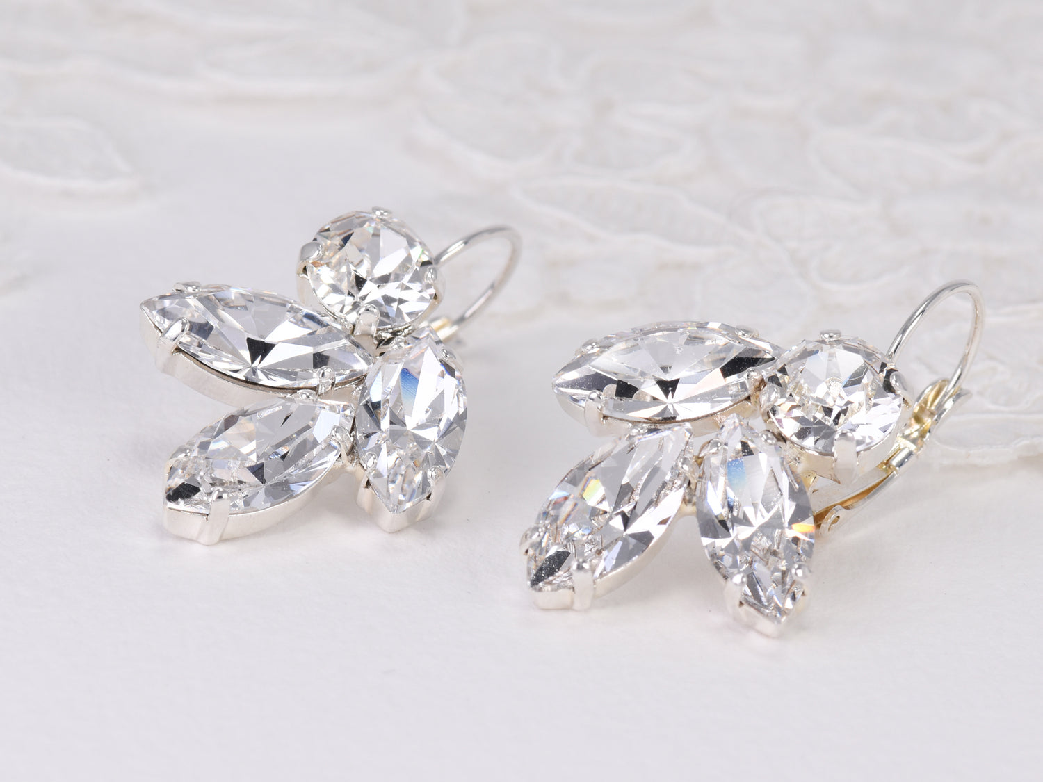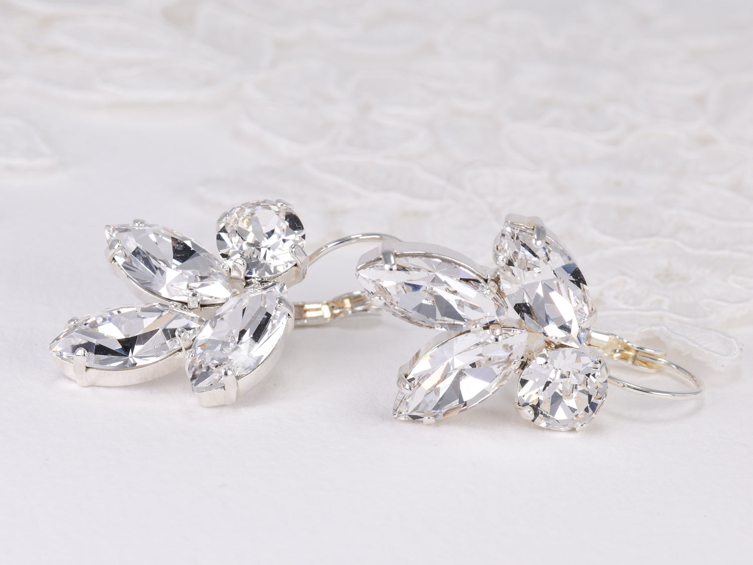 The navette and brilliant cut round Austrian crystals are arranged so that the earrings are a flattering mirror image pair.